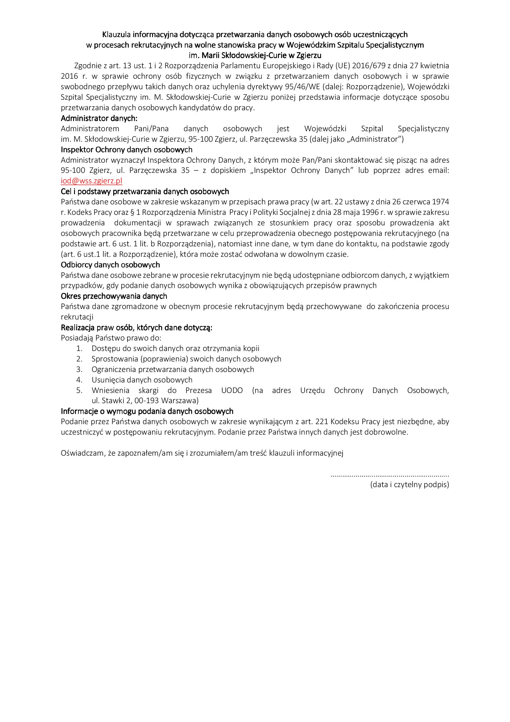 LEKARZE ROZPOCZYNAJĄCY STAŻ PODYPLOMOWY OD 1 PAŹDZIERNIKA