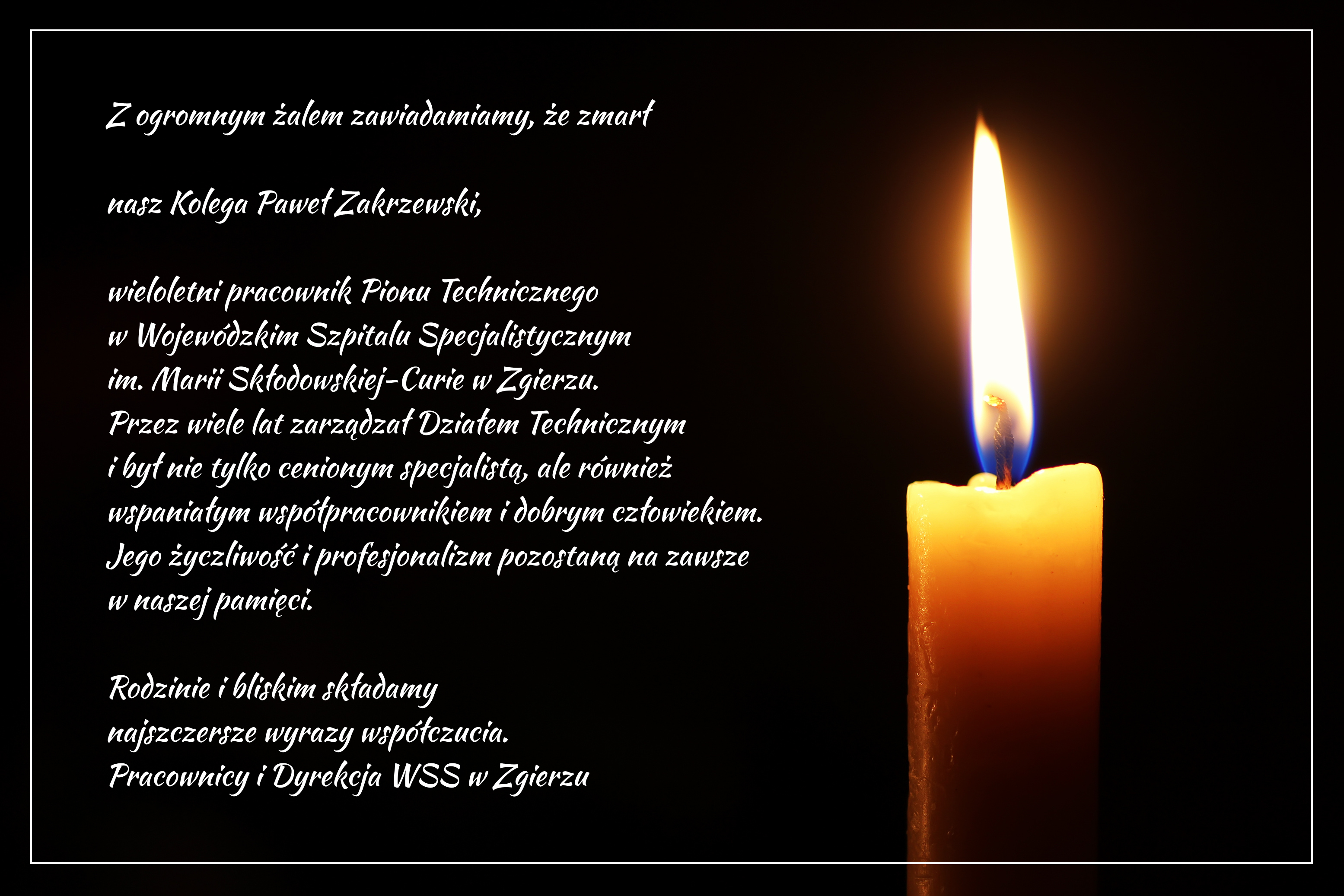 Z ogromnym żalem zawiadamiamy, że zmarł nasz Kolega Paweł Zakrzewski